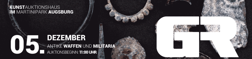 Vorankündigung der Versteigerung einer kleineren Sammlung eines unserer Frankfurter Kunden mit europäischen und orientalischen Waffen und Militaria 1870 - 1945 im Kunstauktionshaus Rehm, Inhaber Christopher Neureuther, in Augsburg.