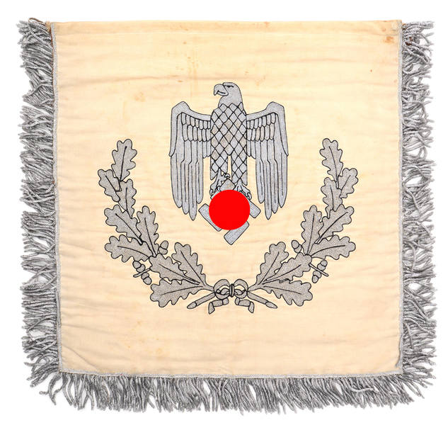 Paukenbehang für Fliegende Truppen der Luftwaffe. Kfz-Stander für Heeres-Generäle und Panzertruppe. Kfz-Stander