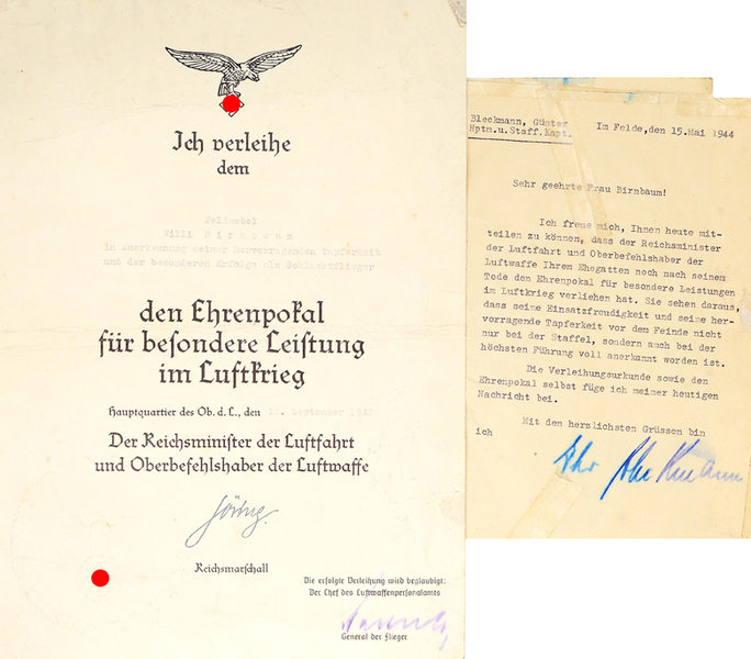 Ehrenbecher für Sieger im Luftkampf Erster Weltkrieg. Gau Ehrenzeichen Sudetenland.