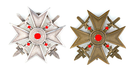 Marinefrontspangen in Silber und Bronze, mit Urkunde. Abzeichen für Wehrwirtschaftsführer. Spanienkreuze.