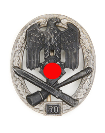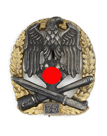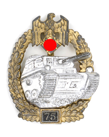 Panzerkampfabzeichen in Silber mit EZ 75 der Fa. JFS. Allgemeines Sturmabzeichen mit EZ 50 und EZ 75.