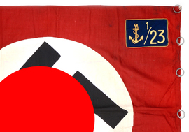 SS-Sturmbannfahne des II. Bataillons 23. Standarte. Sturmfahne der Marine-SA 1/23. Mehrere Fahnen diverser