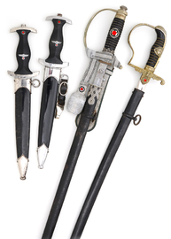 SS-Dolche, SS-Führerdegen und Offizierssäbel Typ PRINZ EUGEN. Diverse Kampfabzeichen Heer/Luftwaffe/Marine, teils