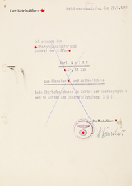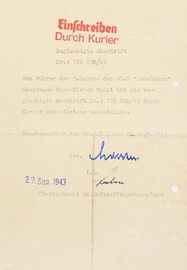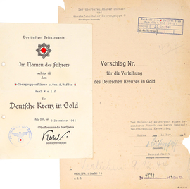 Vorläufiges Besitzzeugnis mit Verleihungsvorschlag zum Deutschen Kreuz in Gold an SS-Obergruppenführer und General